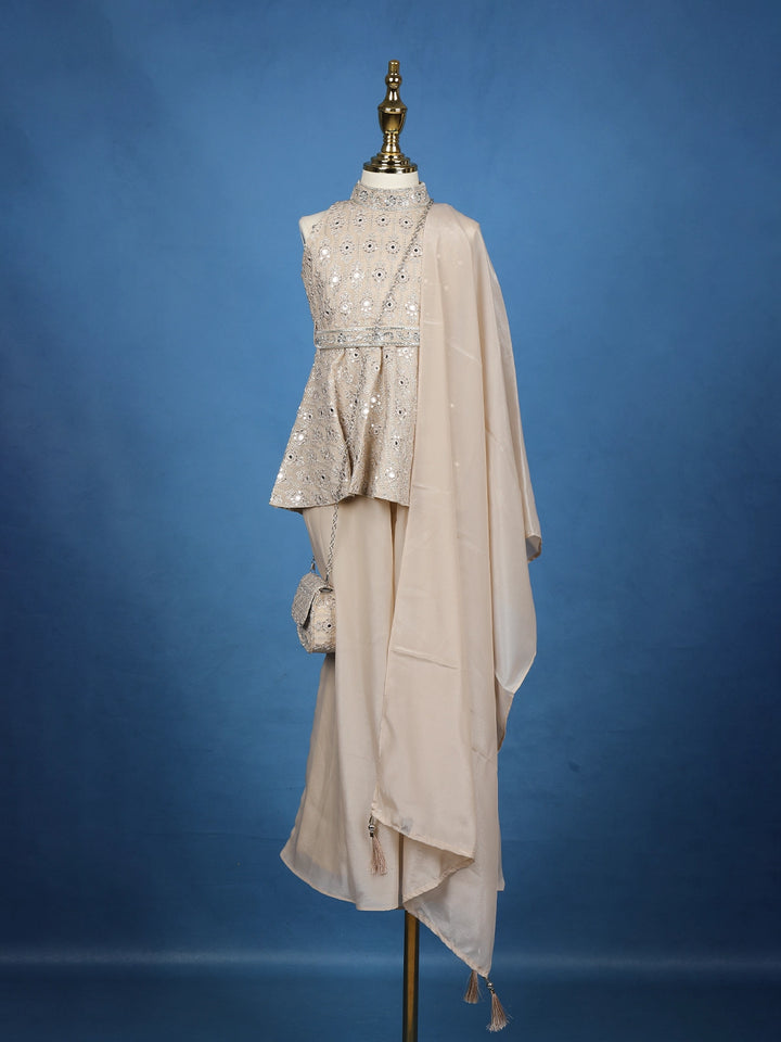 Peach Mirror Work Georgette Kids Palazzo Suit - Diadem