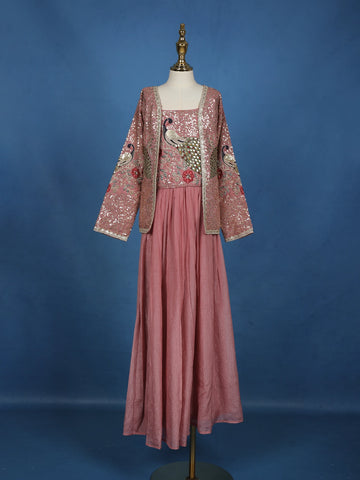 Pink Floral Embroidered Shimmer Kids Palazzo Suit With Jacket - Diadem