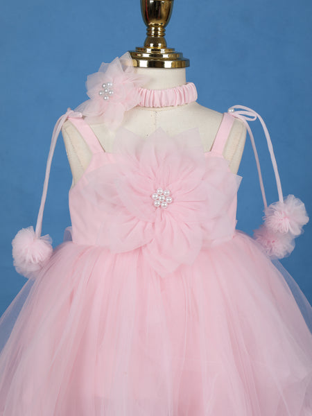 Blush Pink Floral Appliqué Net Frock with Voluminous Net Ruffles - Diadem