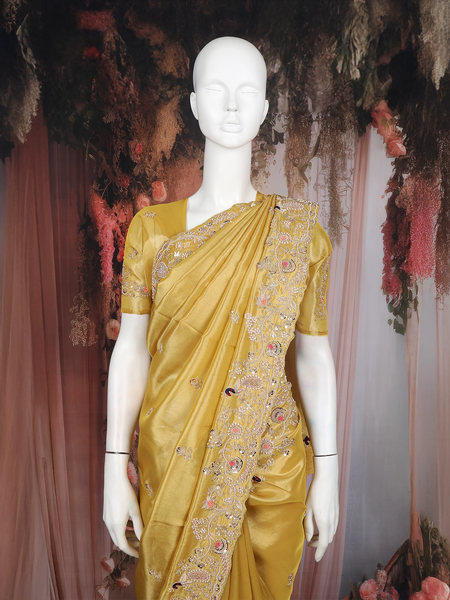 Yellow Floral Designed Fancy Cotton Saree - Diadem