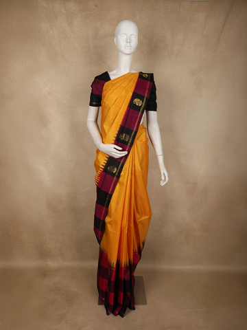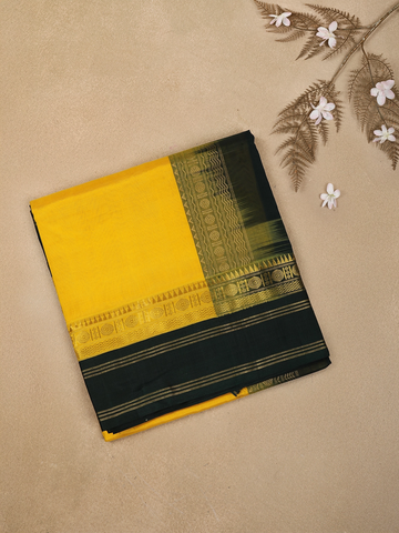 Yellow Chevron Designed Fancy Cotton Saree - Diadem