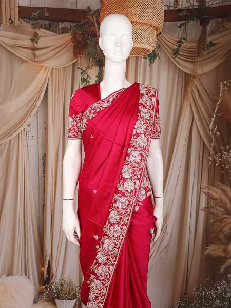 The heavy embroidery sarees at Ashirah Silks are timeless pieces, adorned with detailed and intricate embroidery that showcases exceptional craftsmanship. These latest heavy work saree designs are perfect for all special occasions where you want to glow and shine.