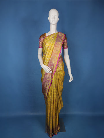 Yellow Brocade Woven Pure Kanchipuram Silk Saree - Diadem