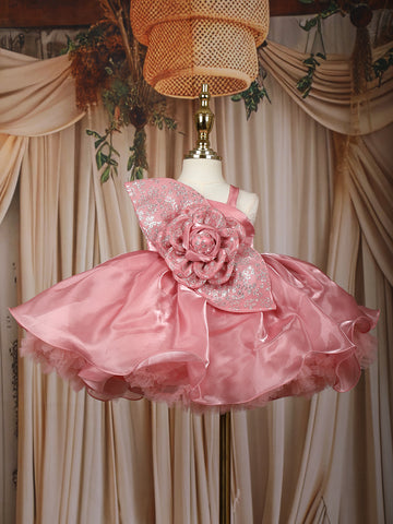 This adorable and stylish party gown for kids with puff sleeves and a bow adds a playful yet sophisticated element to the child's ensemble.