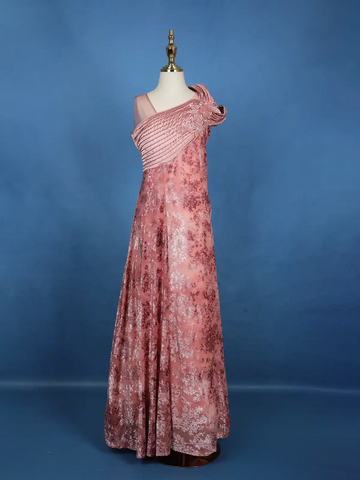 This sparkling gown dress for kids embellished with glitter all over the material is perfect for making a dazzling statement at parties and wedding receptions.