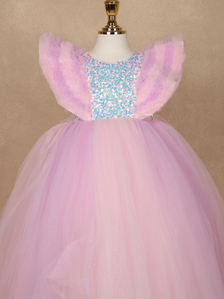 One of the most popular choices for parties, evening events, and receptions is the netted kids' gown, featuring variations like Glitter net, shimmer net, sequins net, and lace net.