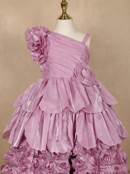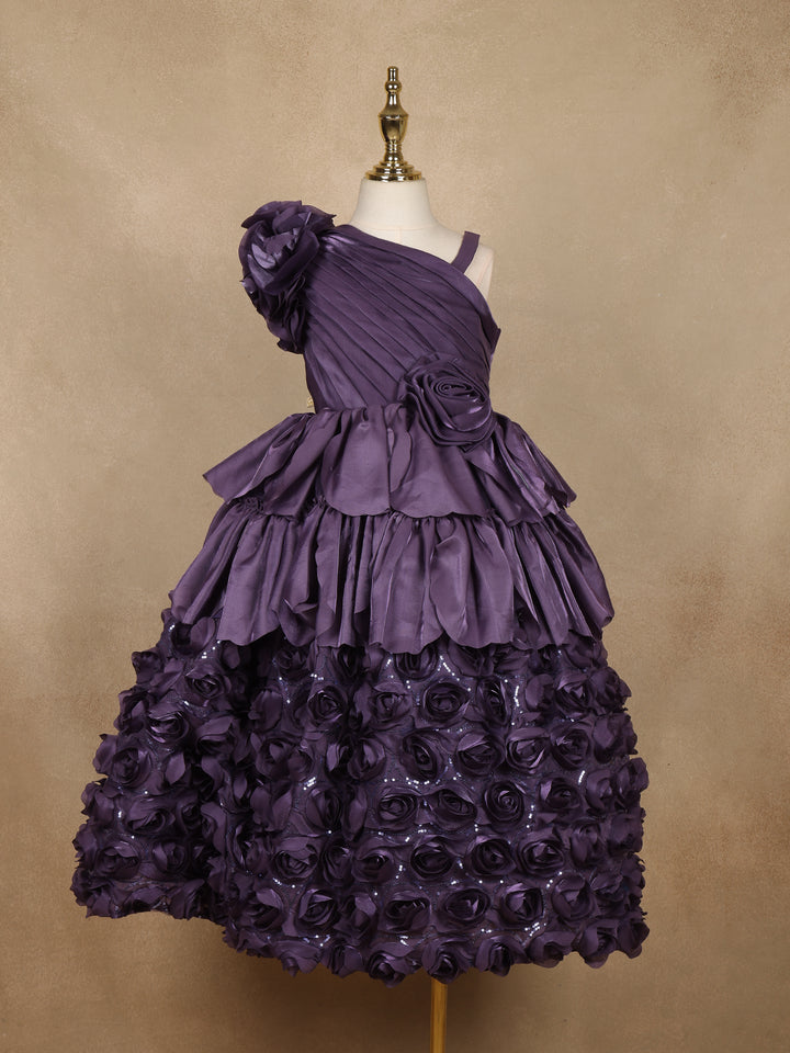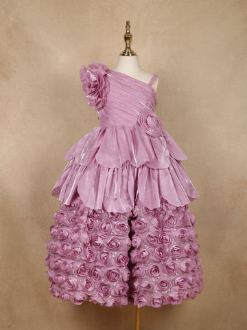 Being elegant and graceful, the layered long gown design for kids offers a whimsical look with its cascading layers, ideal for birthdays and parties.
