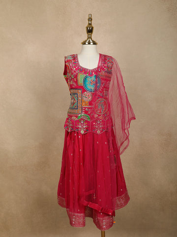 - Ethnic Wear Kids Lehenga: Traditional elegance meets youthful charm in our ethnic kidswear lehenga featuring traditional and antique motifs perfect for festive occasions.