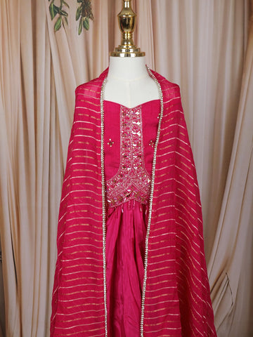 Queen Pink Floral Design Kids Peplum Top With Skirt And Dupatta-lehenga - Diadem