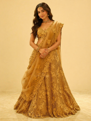 - Gold Lehengas: Luxurious and glamorous, perfect for bridal or reception looks.