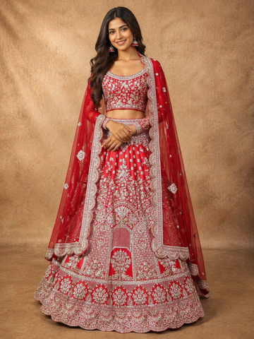 - Red: A classic choice for bridal lehengas, symbolizing love and tradition.