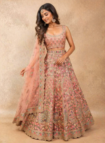 This season, we see a rise in metallic pastels, scalloped borders, and "trail" lehengas. Floral zardosi and minimalist designer lehengas are also very popular for brides who want a sophisticated, modern look.