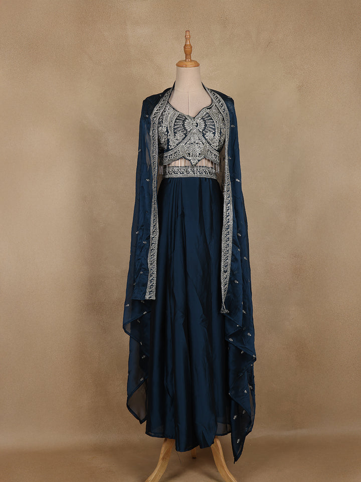 Indo Western Lehengas blend ethnic elegance with modern fashion, offering a fresh take on traditional attire. These outfits typically feature lehenga skirts styled with crop tops, peplum blouses, jackets, or statement sleeves. Ideal for sangeet nights, receptions, and fashion-forward bridesmaids, the Indo Western Lehenga is perfect for those who want tradition with a contemporary edge.