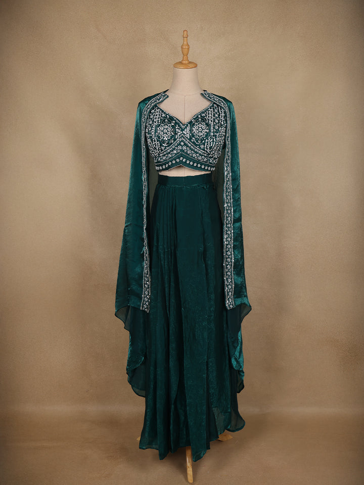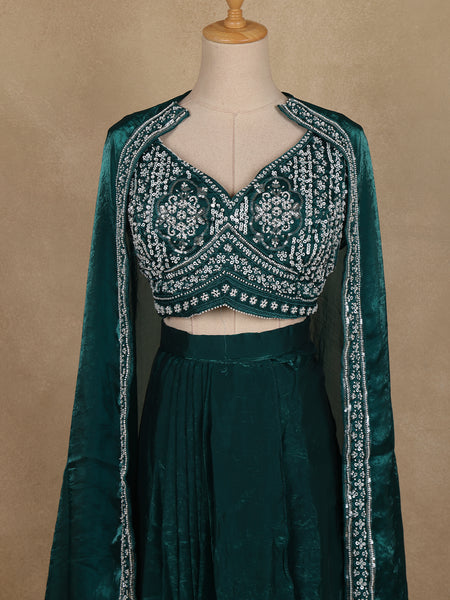 Party wear lehengas with layered flares, crop-top blouses & jacket styles