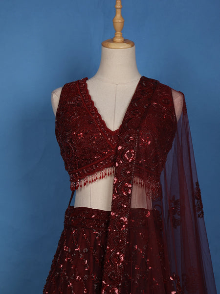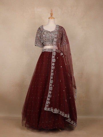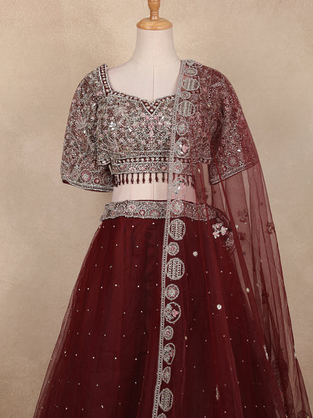 Discover the delicate beauty of maroon net lehengas at Diadem, perfect for creating a dreamy, ethereal bridal look, with intricate detailing and a lightweight feel. If you're looking for a romantic and whimsical style, our maroon net lehengas offer something for everyone.
