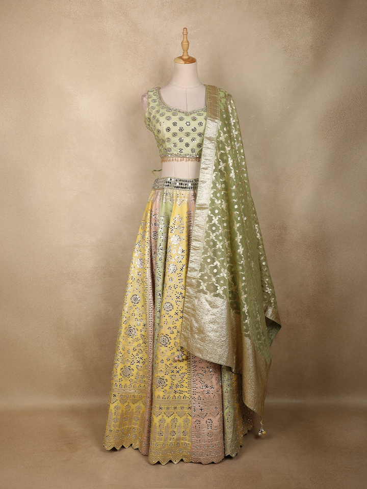 3. Elegant Mehendi Lehenga with Thread & Mirror Work