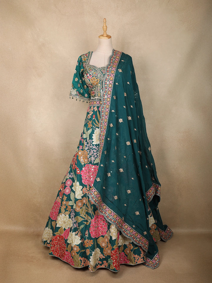 2. Exquisite Mehendi Lehenga with 3D Flowers & Sequins