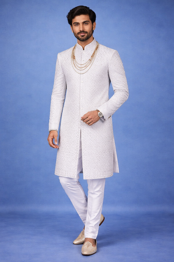White Floral Designed Sherwani Suit - Diadem
