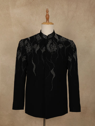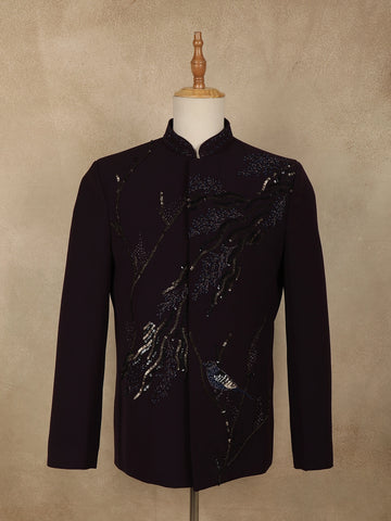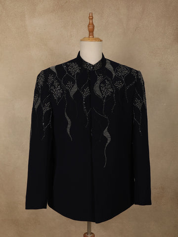 Dark Blue Sequin Designed Jodhpuri Men's Suit - Diadem