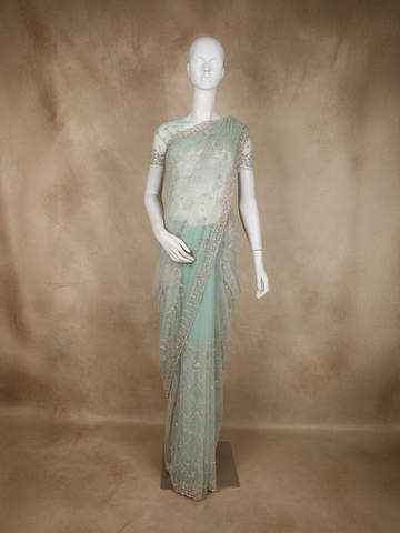 A net fabric saree is a type of saree made from a sheer, lightweight fabric, often with intricate embroidery or embellishments. This type of designer net saree for girls and women is known for its elegant, modern appearance and graceful draping.
