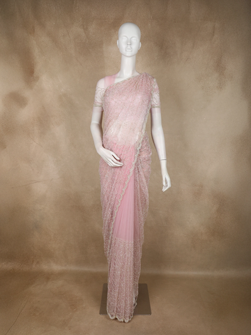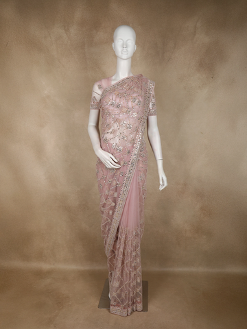 Delight in the charm of our alluring, new design net saree in a lovely pink hue. The soft, romantic hue and delicate net fabric make it an ideal choice for a dreamy, elegant net saree look.