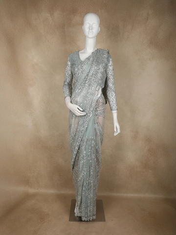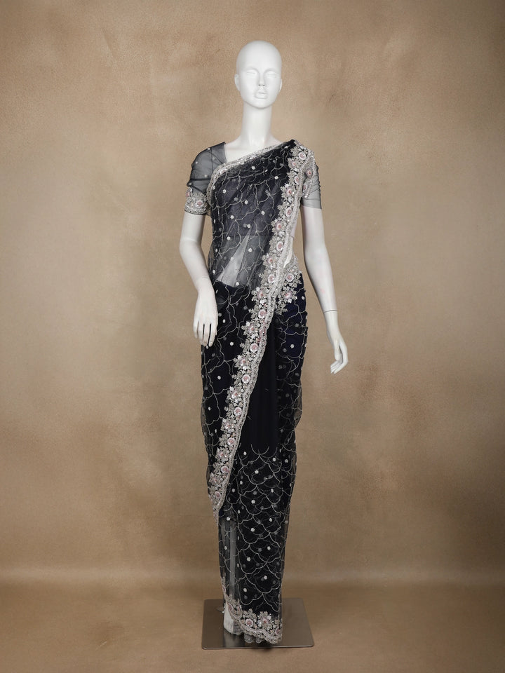 Enchant with Ashirah's blissful blue net saree design. The deep, captivating blue and fine net fabric create a fascinating combination that’s perfect for any sophisticated occasion.