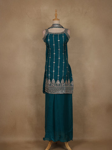 Sky Blue Floral Embroidered Palazzo Salwar Suit for Girls - Diadem