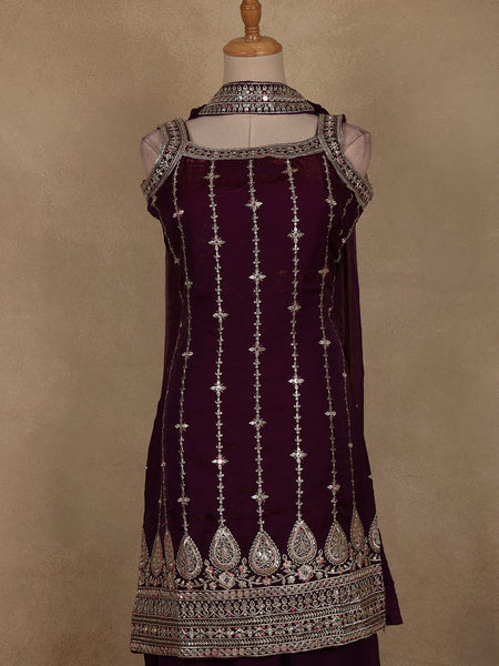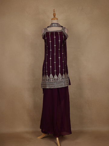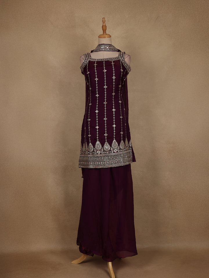 Dark Purple Georgette Palazzo Salwar Suit Online - Diadem