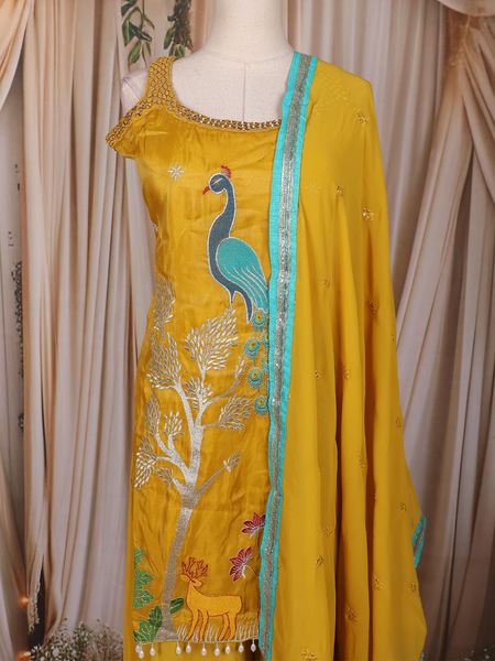 Experience a fusion of traditional and modern with a salwar suit and palazzo pants. This combination retains the charm of the classic salwar suit while adding the relaxed fit of palazzo pants making it versatile enough for a wide range of occasions.