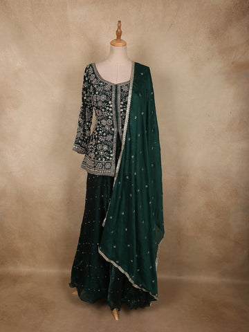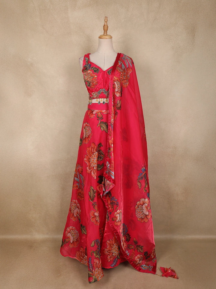 The party wear peplum top with lehenga is for those who love a modern silhouette. This pairing adds a trendy twist, with the peplum top enhancing curves and creating a flattering shape. Ideal for both women and girls, this look is perfect for a mix of elegance and contemporary style.