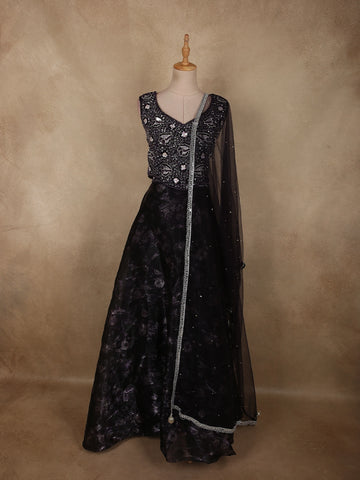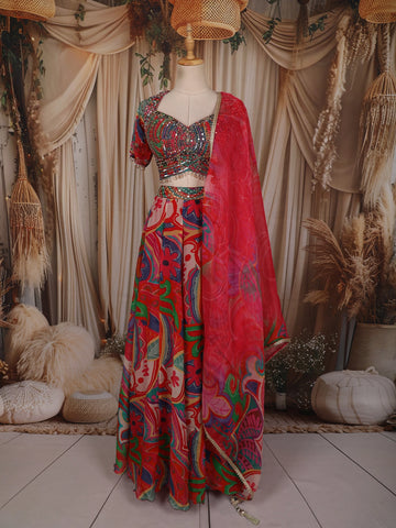 The party wear lehenga suit brings a touch of fusion to the classic lehenga. This unique design combines the best of both a suit and a lehenga, offering a comfortable yet chic look.