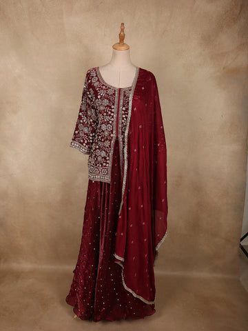 Make a bold style statement with a party wear lehenga jacket! The lehenga and jacket combo is perfect for adding warmth and a touch of sophistication. Pairing a richly embellished jacket with a lehenga brings both elegance and versatility, making it a go-to choice for cooler evening events.