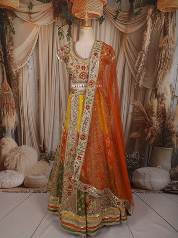 Chanel timeless grace with a party wear Pakistani lehenga. Known for its intricate embroidery and luxurious fabrics, this style combines tradition and sophistication. Pair it with a beautifully embellished dupatta for that quintessential festive charm for weddings and more.