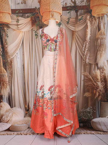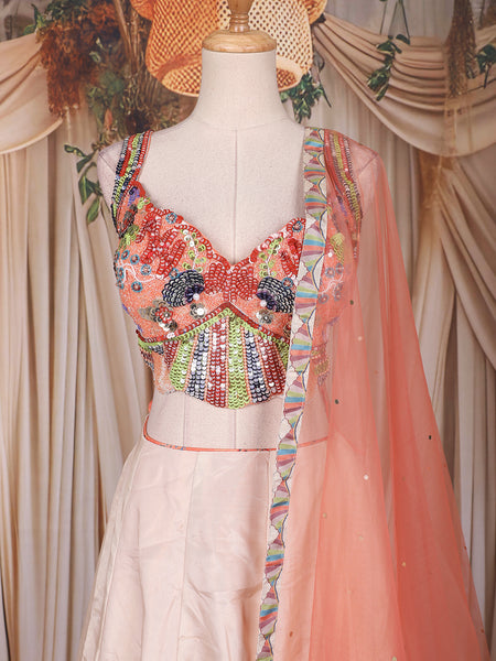 The party wear lehenga suit brings a touch of fusion to the classic lehenga. This unique design combines the best of both a suit and a lehenga, offering a comfortable yet chic look.