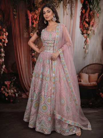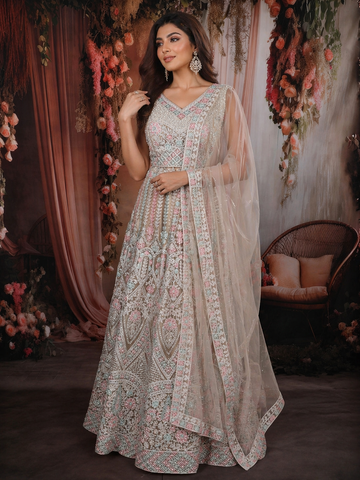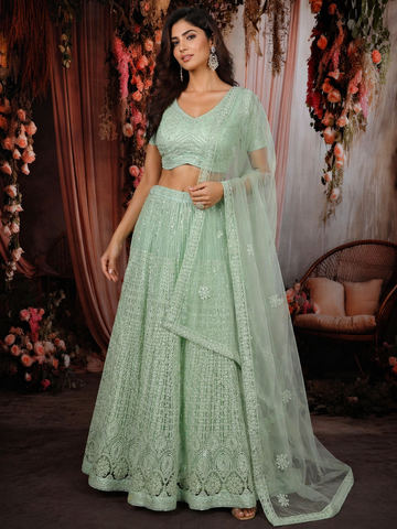 Light, airy, and effortlessly chic, the party wear net lehenga choli is ideal for those who want a delicate yet glamorous look. The sheer elegance of net fabric combined with intricate detailing makes this design a perfect choice for evening events.