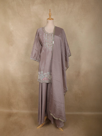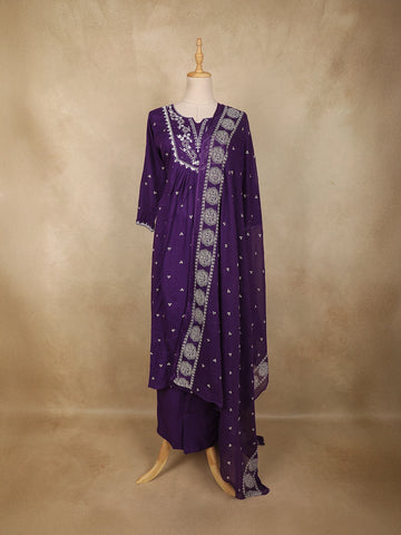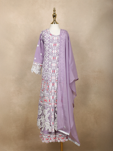Lavender Sequins Embroidered Chiffon Palazzo Suit - Diadem