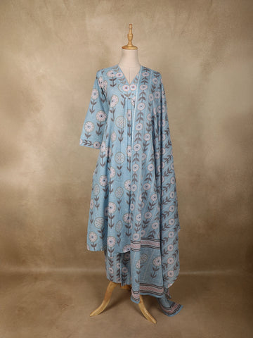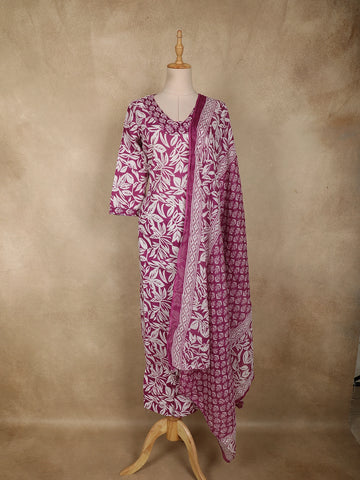 Lavender Paisley Printed Cotton Salwar Suit - Diadem
