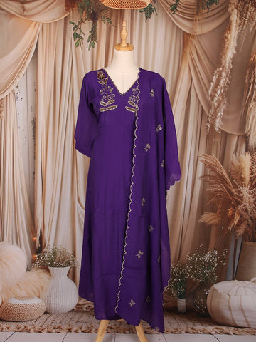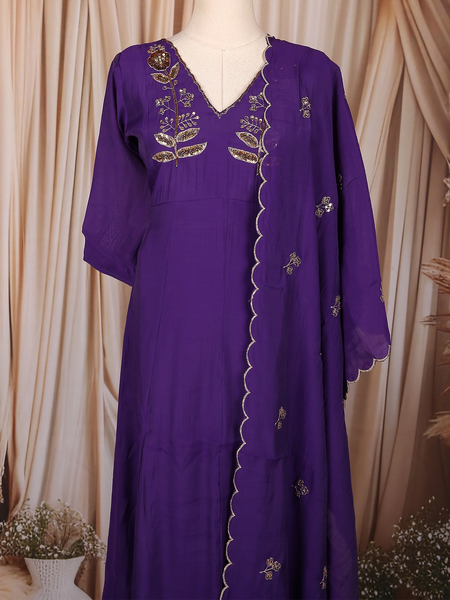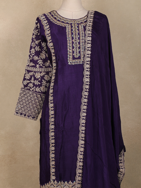 Dark Purple Floral Designed Semi Silk Straight Cut Salwar Suit - Diadem