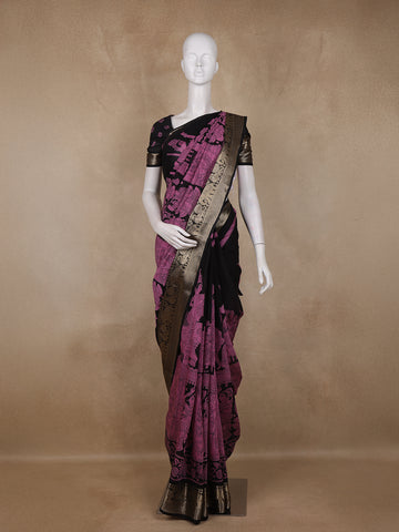 Purple Soft Silk Saree with Temple Ikat Border - Diadem