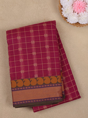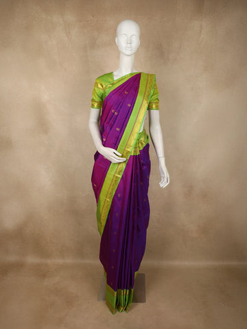Purple Kanchi Cotton Saree with Thread Butta on the body and Zari Border - Diadem