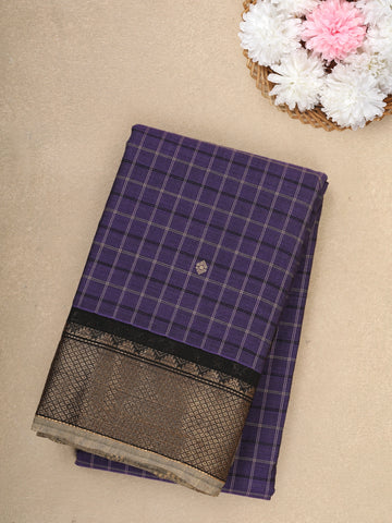 Purple Art Silk Saree with Small Checks Design on the Body with Contrast Designed Border - Diadem