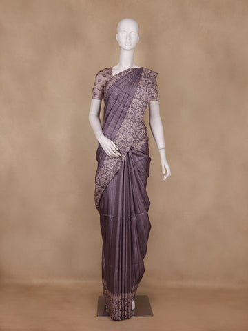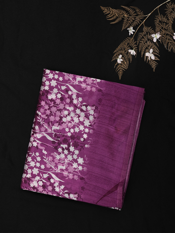 Lavender Floral Designed Semi Silk Fancy Saree - Diadem