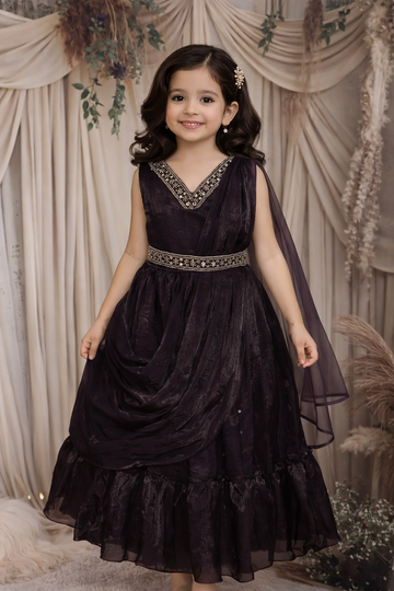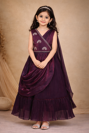 A wine-red designer gown in Chennai represents the height of sophistication and non-traditional glamour. Wine red, being the darkest, richest red, is the colour of choice for an elite, high-fashion aesthetic.