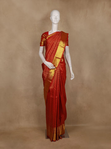 Red Checkered Woven Pure Kanchipuram Silk Saree - Diadem