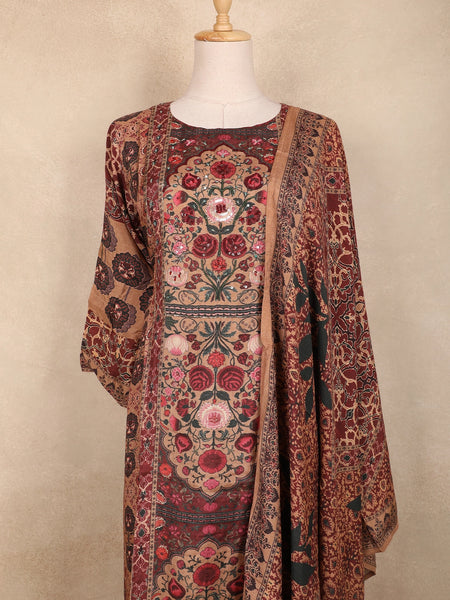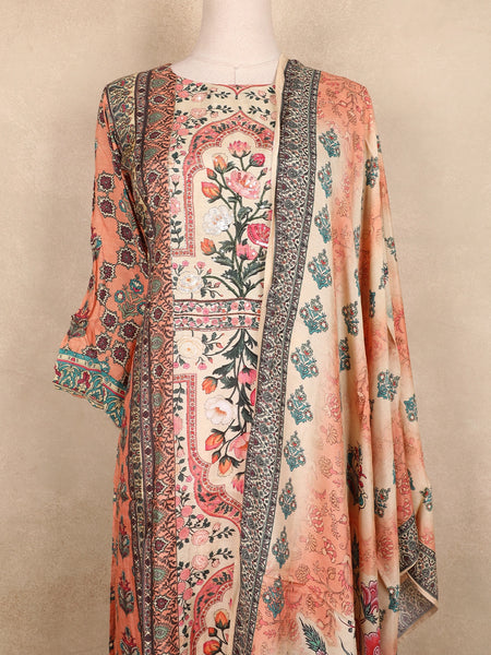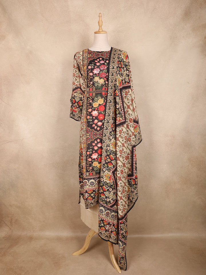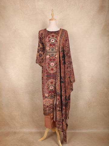 Multicolor Floral Printed Semi Silk Salwar Suit - Diadem