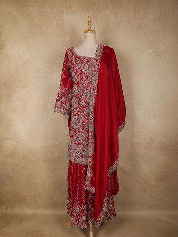 Feel bold and gorgeous in our beautiful red-coloured salwar suits online. Shop now at Ashirah Silks for stylish designs perfect for every festive occasion!