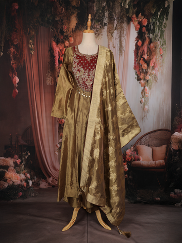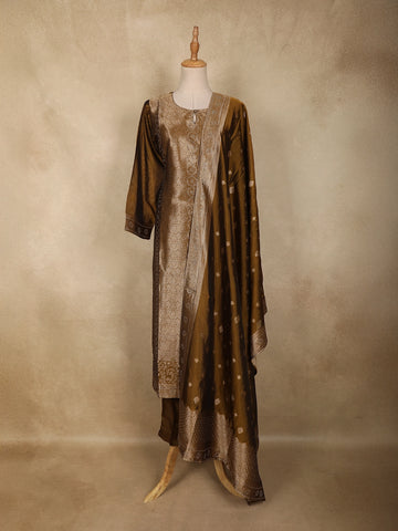 Explore the refined elegance of Banarasi salwar suits online at Ashirah Silks, showing exquisite brocade work suited for weddings and cultural events.