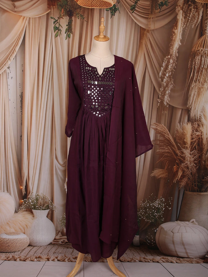 • Anarkali suit → Long, flared kameez with churidar or straight pants