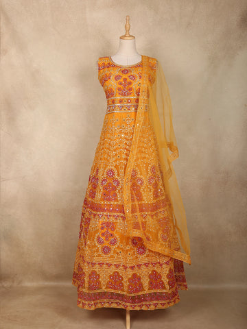 Multi Color Floral Embroidered Designer Lehenga with Orange Dupatta - Diadem