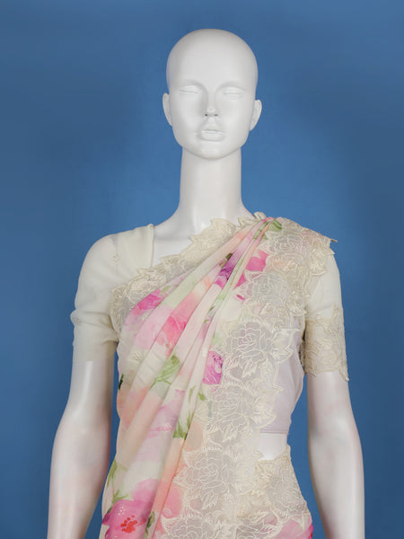 Light pink sarees, pastel peach, and ivory sarees are trending for brides seeking a softer, contemporary vibe. These trending saree styles are perfect for receptions and pre-wedding events.